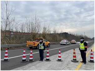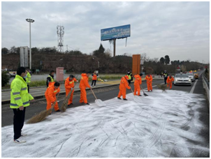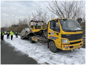 演練模擬成萬方向K110+500處因冰雪天氣影響,路面出現(xiàn)積雪結冰,導致車輛行駛中打滑側溜迫停,造成交通路塞。參演單位按照演練方案快速集結,迅速組織人員裝備,趕赴事發(fā)地點,有序實施交通管制,設置交安設施,實施緊急救援,清理路面障礙,疏散滯留車輛,消除安全隱患,恢復車輛通行。