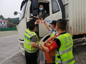 在綿陽南服務區(qū),黨員志愿者積極為駕乘人員提供食品、飲水,耐心宣傳疫情防控知識,溫馨提醒駕乘人員做好佩戴口罩,亮碼掃碼,測量體溫,保持一米線等防護措施。