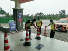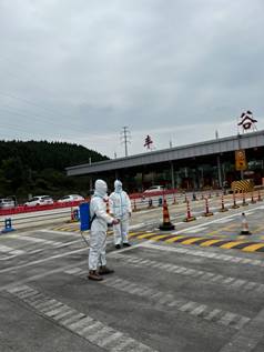 在收費站,黨員志愿者積極主動配合屬地政府開展疫情防控工作,不間斷開展場所消殺,疏導出站車輛,疏散滯留人員,清掃環(huán)境衛(wèi)生。