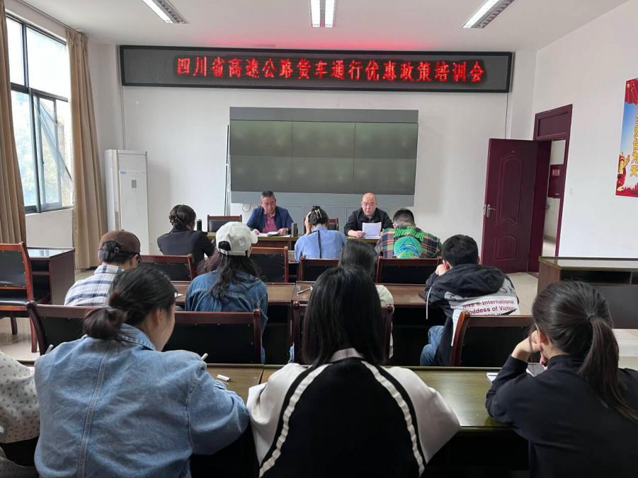 此次對(duì)員工的培訓(xùn)主要是對(duì)2024年四川省高速公路通行費(fèi)優(yōu)惠政策的解讀(普通貨車(chē)優(yōu)惠、集裝箱優(yōu)惠、新能源貨車(chē)優(yōu)惠等)和收費(fèi)系統(tǒng)操作、收費(fèi)常見(jiàn)問(wèn)題答疑及特情處置等。